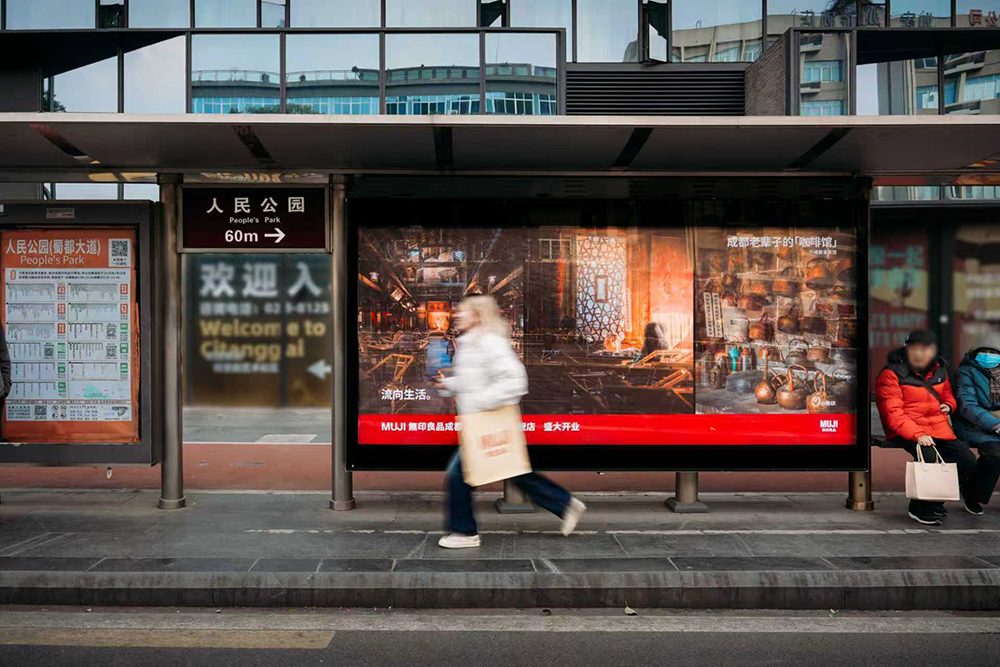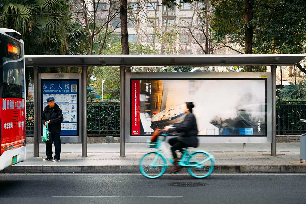 MUJI 在筛选后将这些影像再次“流向”了更多生活的日常,成都太古里、春熙路、人民公园、交子大道等多个核心商圈的公交站牌已经出现了这些影像,这些入选照片也会被做成限定明信片在 MUJI 成都太古里旗舰店内展示。