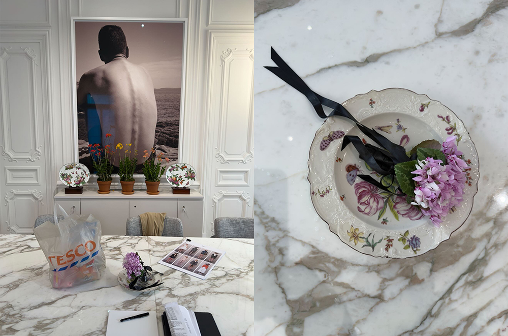 更出人意料的是,就在高定秀前两天,Jonathan Anderson 在社交媒体上分享了自己与 John Galliano 此前的会面,后者送了他两束亲手采摘的仙客来花束,并为工作室团队带去了 Tesco 的甜点。