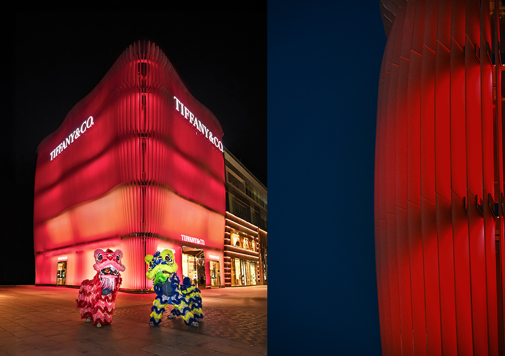 活动现场有演员陈昊森、赵天爱、宋妍霏和赖伟明亮相,盘尼西林乐队做了现场表演,同时蒂芙尼还以“中国红”首次点亮了位于三里屯太古里北区的全新旗舰店的外立面,这样以东方色彩融合了现代表达,整座建筑仿佛成为了一盏红灯笼,以独特的方式致敬了中国传统文化。