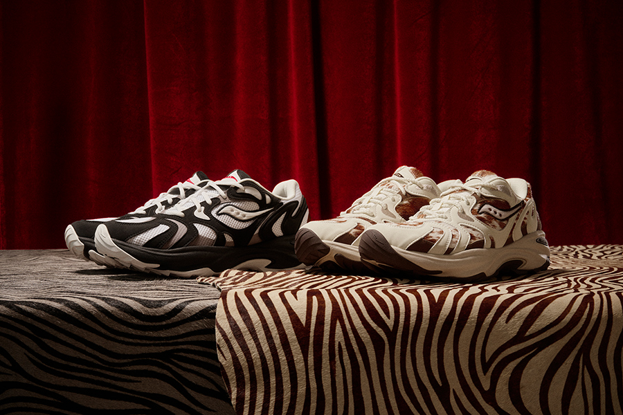 也继续有新鞋款亮相。Saucony 索康尼是去年 12 月 24 日推出 AZURA RE 马年限定系列的,它基于 Saucony 经典鞋型 Grid Azura 2000 进行了重塑,最终有两个限定色:一个是马毛原色款,体现的是动感和速度感,另一个则是“黑白配”,有了个“斑马也是马”的趣味。