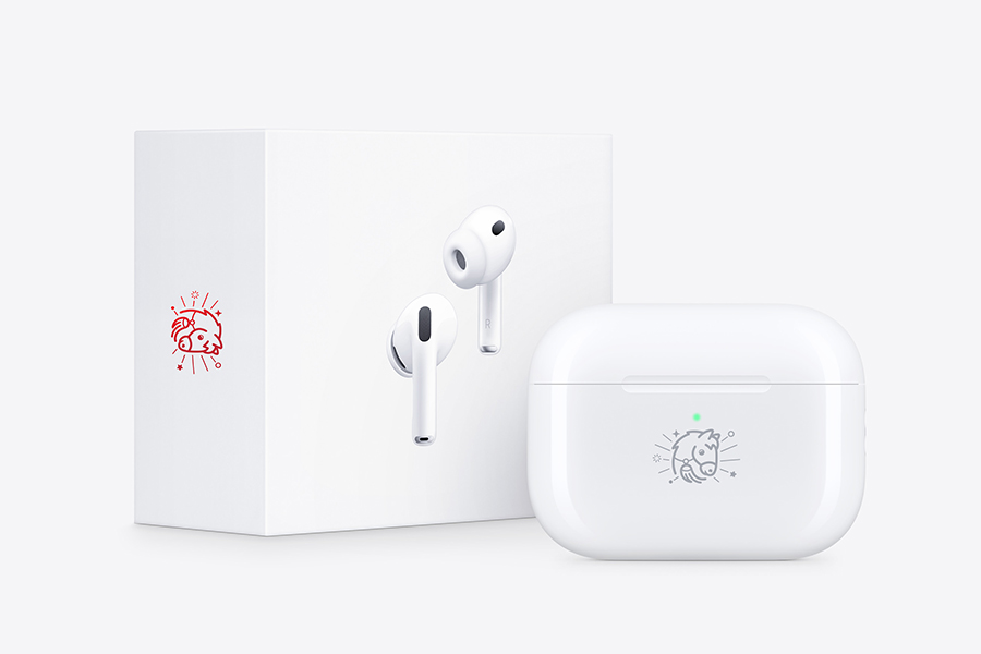 而作为马年特别款产品,今年苹果选择以 AirPods Pro 3 为原型,在外包装及充电盒上加入了马年专属印记。这一 logo 除了体现马的形象,还融合了红缨这一中国传统的马用配饰,寓意福气、平安和成功。