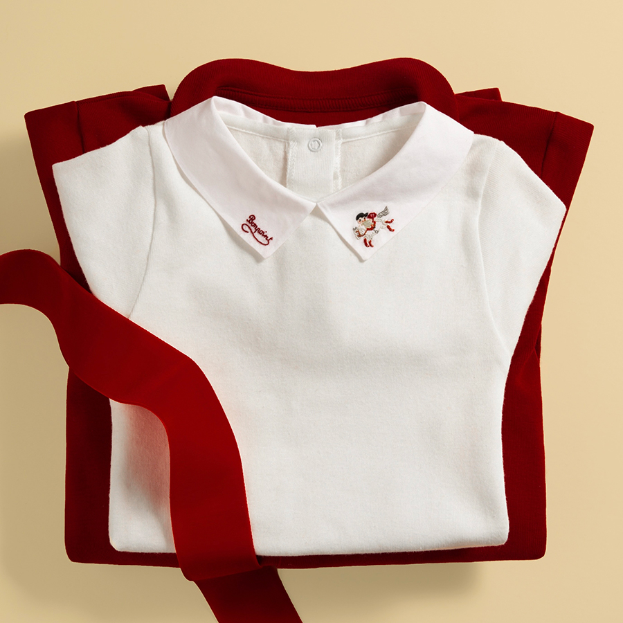 系列还有新生儿款式,刺绣领口连体衣、红色棉质连体衣、柔软羊绒连体衣都有,如果有刚来到这个世界的小朋友,Bonpoint 已经为他们开始探索世界的旅程准备好了装备。
