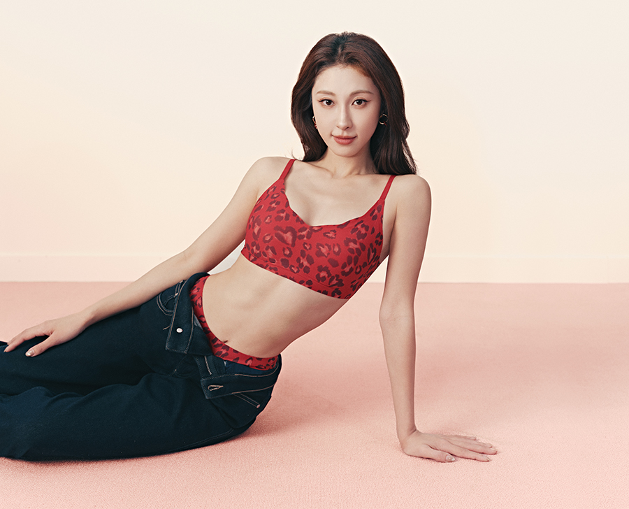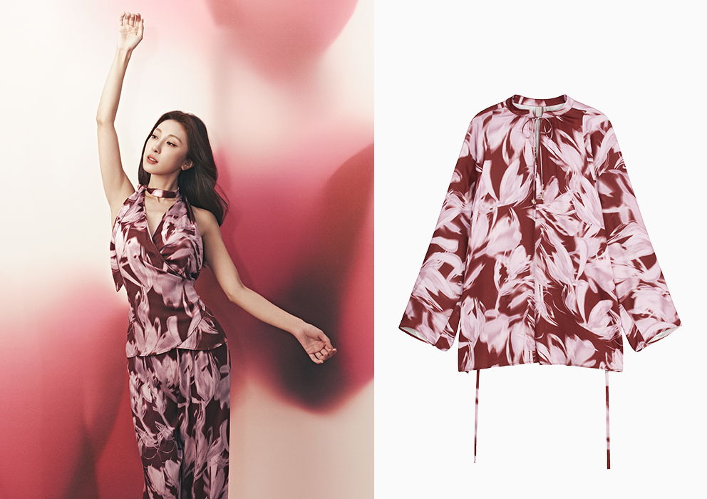 同时摩登新中式家居系列以玉兰花为意象,围裹式带胸垫上衣和抽绳腰直筒裤都采用了粉玉兰印花设计,也有“新年红”的配色点缀。而 NEIWAI Active 火山红系列则带来了新年限定色单品:慕斯短款立领训练外套和慕斯柔感运动喇叭裤。