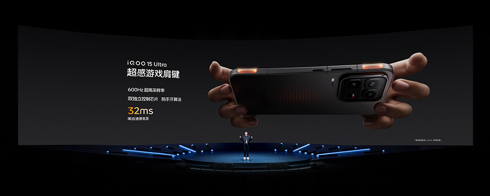 考虑到游戏体验,iQOO 15 Ultra 还搭载了超感游戏肩键、超感陀螺仪和超感触控,全方位提升操作上的表现。它还首发了战锤 MAX 双轴振感马达,以及有战鼓大师双扬声器并支持杜比全景声,进一步加强了沉浸感。