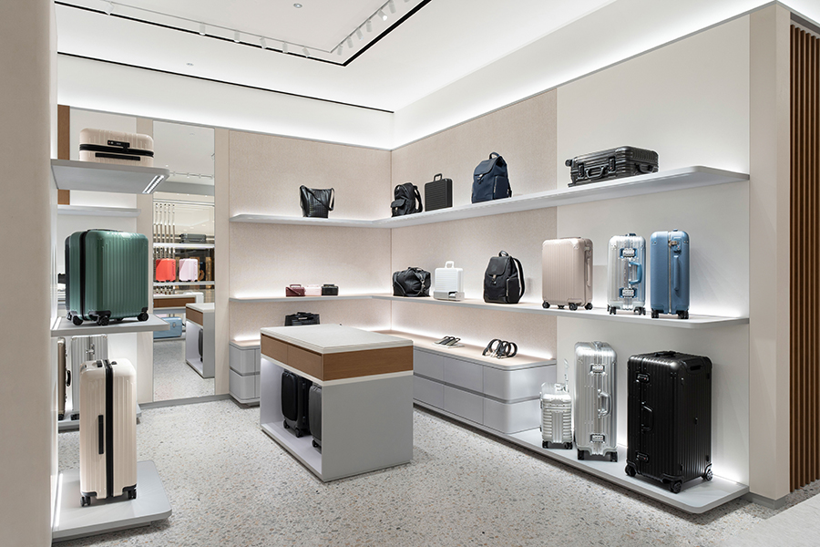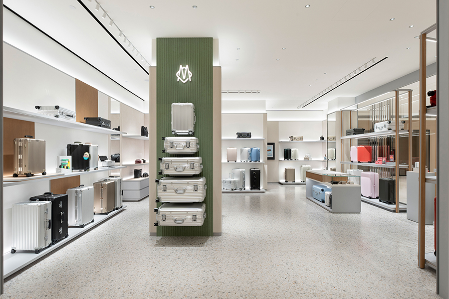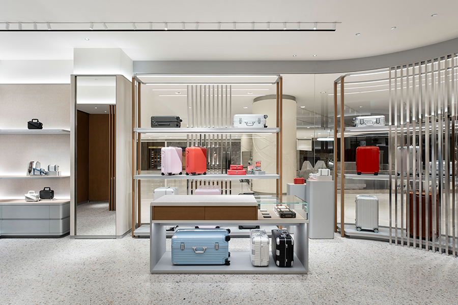 这是 RIMOWA 在武汉的第二家精品店。店铺面积 74.5 平方米,店内以开放式布局带来了品牌全系列产品。