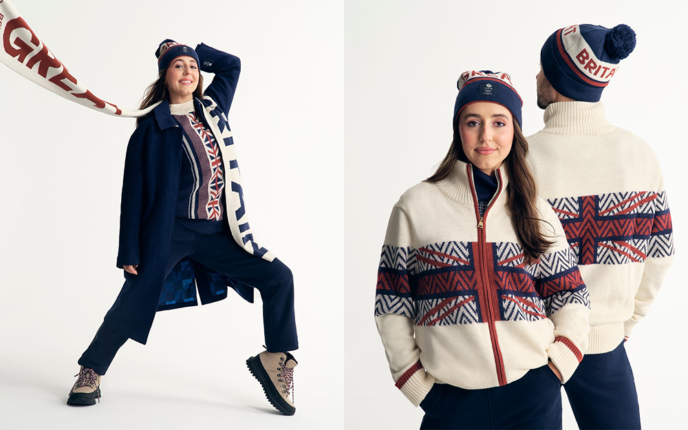 英国代表团这边也是老面孔,开幕式服装由 Ben Sherman 操刀,主打滑雪休闲风,外套是深色的犬牙纹羊毛长大衣,搭配了融入米字旗图案的高领毛衣和慢跑裤,针织围巾和帽子饰有“GREAT BRITAIN”字样,整套造型很协调,也足够体现国家特色。