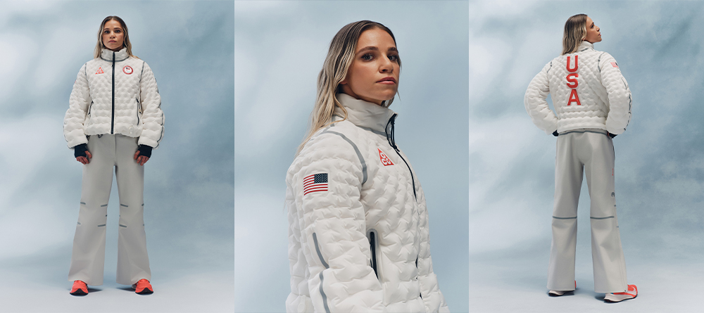美国队的领奖服则由 NIKE ACG 打造,主打单品是一款 Therma-FIT Air Milano 充气夹克,可以对隔层充气或者放气,实现动态保暖。此外还有填充式的 Therma-FIT ADV 夹克、防风防水外套等更多选择。