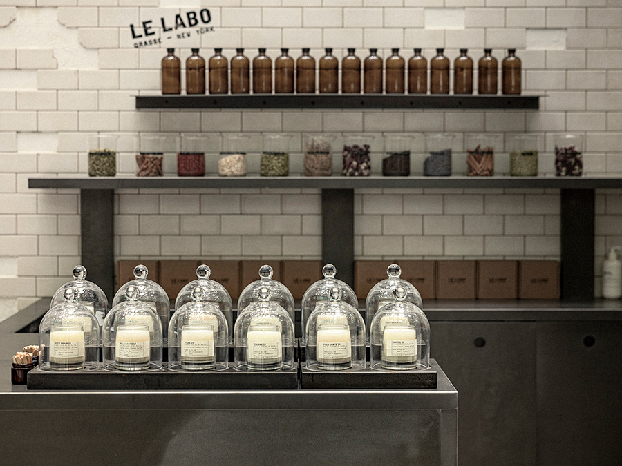店内目前带来了 Le Labo 的经典香氛、香氛身体、家居香氛、全身护理与复古理容系列产品,也提供了个性定制标签服务。