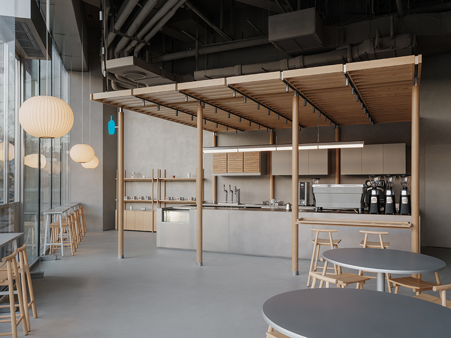 2 月 13 日,Blue Bottle Coffee 蓝瓶咖啡在上海万象城入口位置开出全新门店,店铺由如恩设计研究室(Neri & Hu)操刀,整体延续了蓝瓶咖啡一贯的美学。店内应用了微水泥、不锈钢等材质,家具等则以橡木打造,“以克制且理性的空间语言、简洁的结构与充满细节的材质”带来了标志性的蓝瓶咖啡空间。