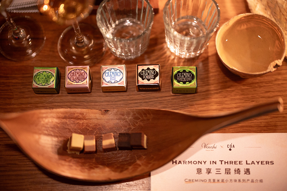 其中的“灵魂主角”,当然就是 Venchi 的 Cremino 克里米诺小方块了,不管哪种口味,它总是由三层细腻结构组成,风味和谐、平衡而有层次。而这趟覆盖三层楼的巧克力与酒的旅程也呼应着 Cremino 的层次感,生动解构着这款经典巧克力所能缔造的一切可能。