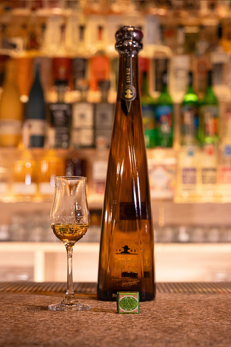 像是 Cremino 开心果酱巧克力 & Don Julio 1942,Don Julio 1942 本就是龙舌兰界的传奇、墨西哥国宝级艺术品,它带来了焦糖、香草与烟熏烘烤龙舌兰芯的口感交织,入口柔顺如丝。它和 Cremino 开心果酱巧克力的搭配平衡了西西里开心果酱扑面的浓郁,而酒体尾调中温暖的蜂蜜、肉桂和成熟水果的复杂层次,则是最高级的收尾。