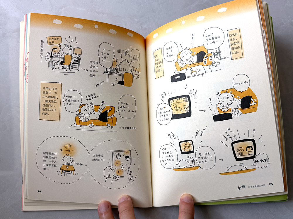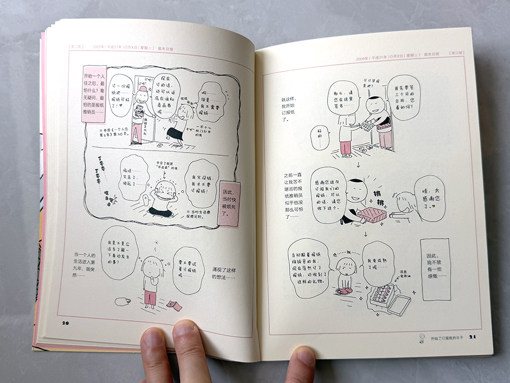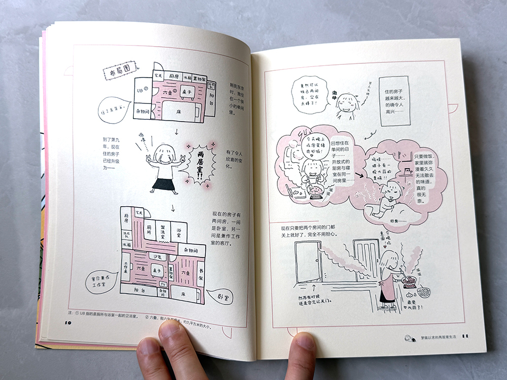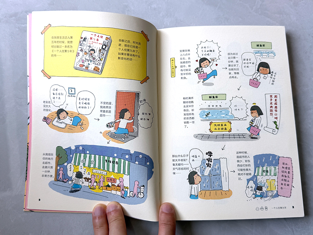 这里推荐的是花城出版社在 2020 年 8 月出版的版本,封面和内页纸张、书拿在手上和翻看起来的感受都非常舒服。同时书里还预告了未来——高木直子提到“再出续集时,我会过着怎样的生活呢”,而现在来看,答案也已经有了,这个系列后面出了《一个人住的每一天》、《一个人住第几年?》,把故事推进到了“来东京的第十八年”。