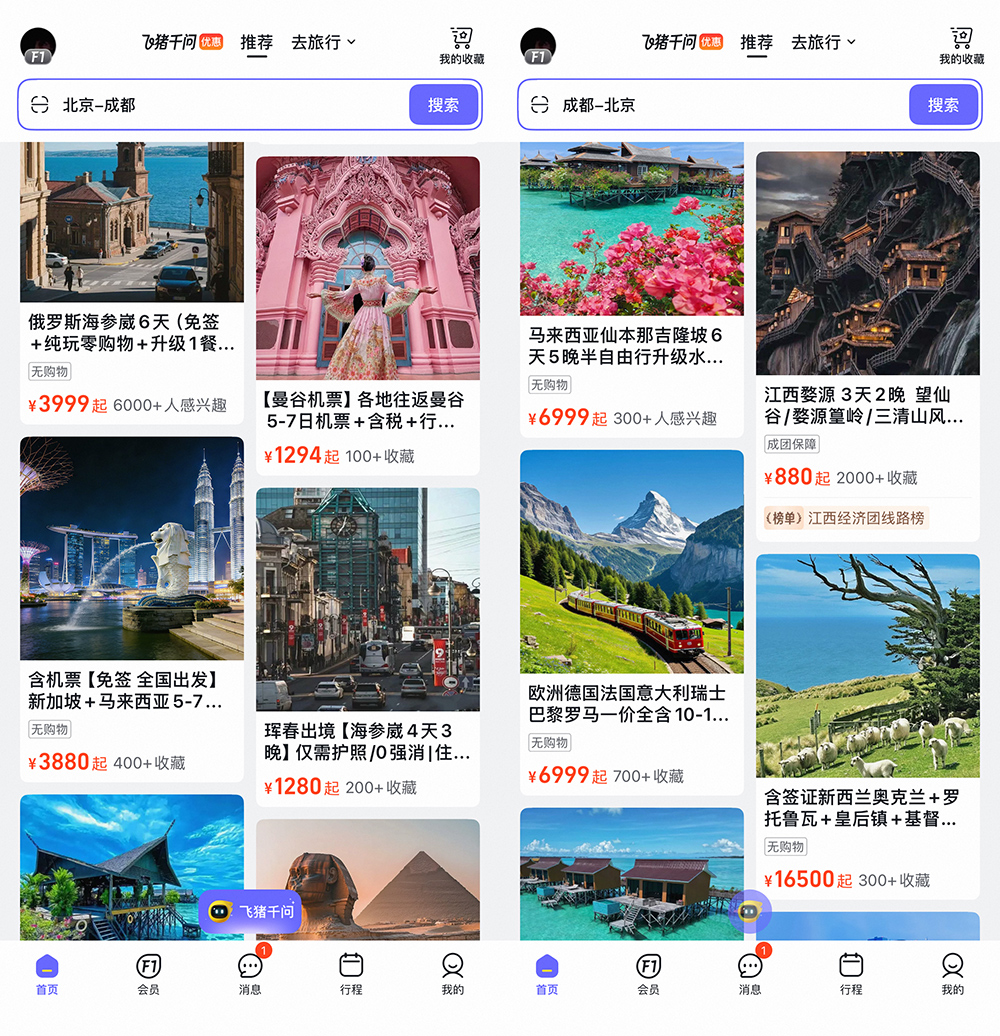 作为一家在线旅游平台,飞猪跳出了“订票工具”这一维度,从一开始提供的就是覆盖住、行、游、玩的完整的解决方案,它将航空公司、酒店、旅行社、目的地等多个类别聚合在同一平台下,为用户提供一站式出行或度假服务。飞猪能提供各种权益组合和出行套餐,从而覆盖到不同的场景,或者说它卖的就是不同的场景。