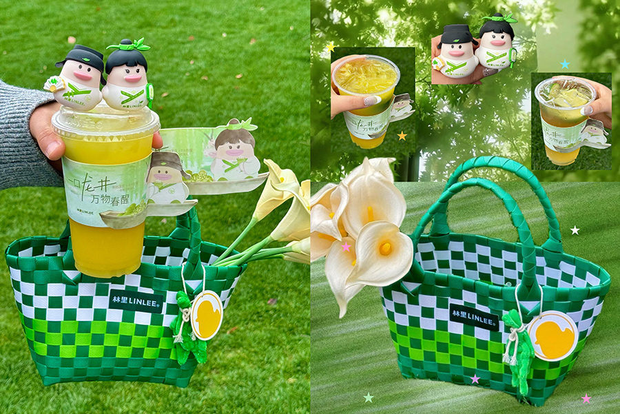 此外,这次品牌 IP“林里鸭”也同步换上了体现国风意境的“春游江南”新装,有“林小生鸭”和“林佳人鸭”盲盒可以随机解锁,同时顾客还有机会得到“林里春游菜篮子”,这是为出游场景专门设计,方便大家打包林里的龙井柠檬茶随身带走。