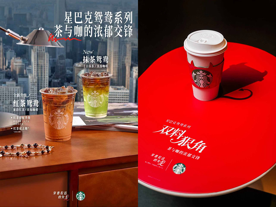 4 月 23 日,星巴克和《穿普拉达的女王 2》电影合作系列正式发售,合作以“双料狠角”为主题,星巴克带来了全新的鸳鸯系列,同时也推出了限定合作款周边产品。